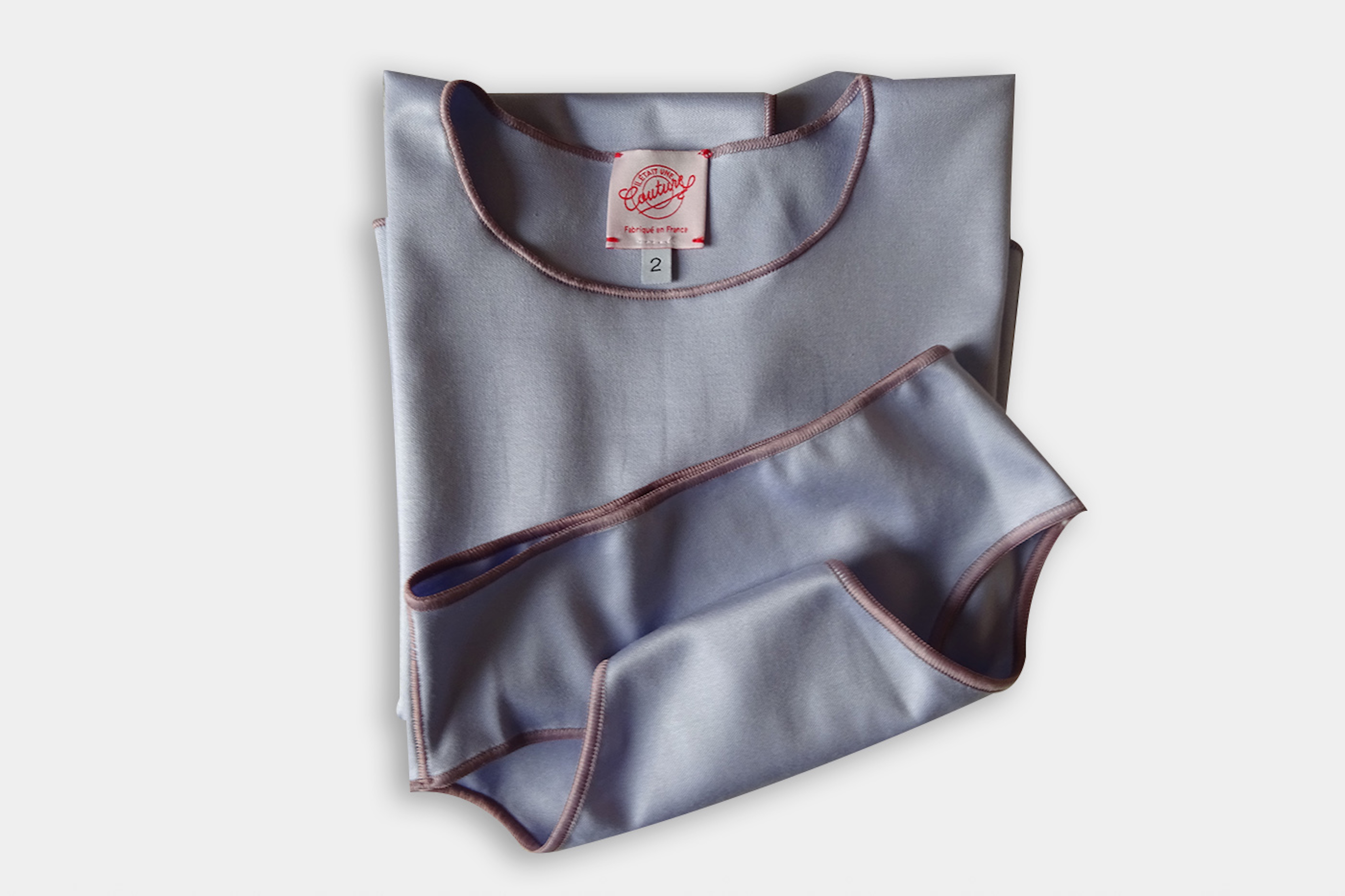 Nous vous proposons notre ensemble culotte et tee-shirt col rond coordonnés.